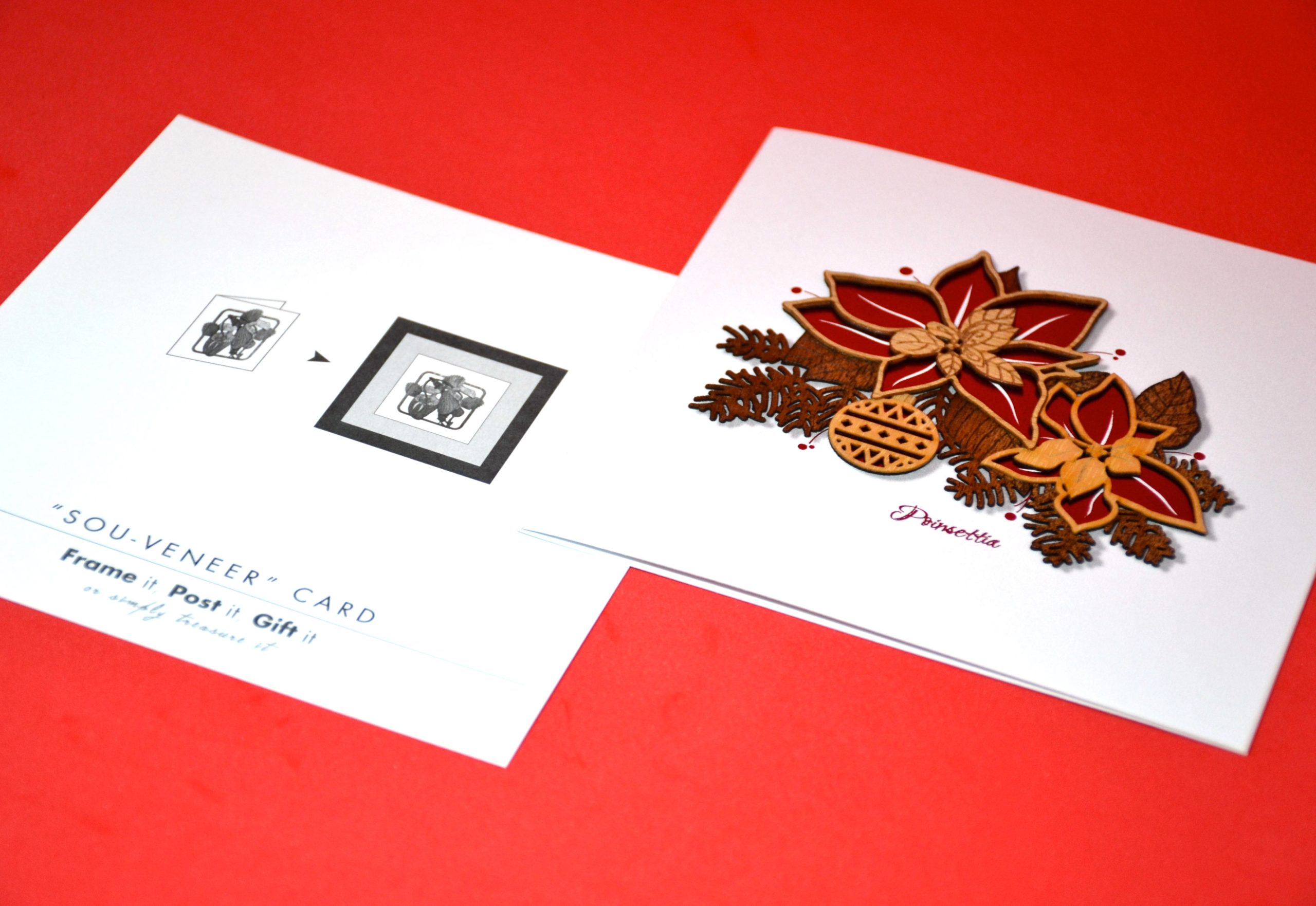 Made with recycled wood and red foil