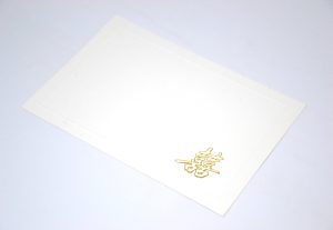 6.18″ x 4.25″ 250gsm, Maple white Blind embossed frame Gold foil motif Matching envelopes Packaged in plastic sachet