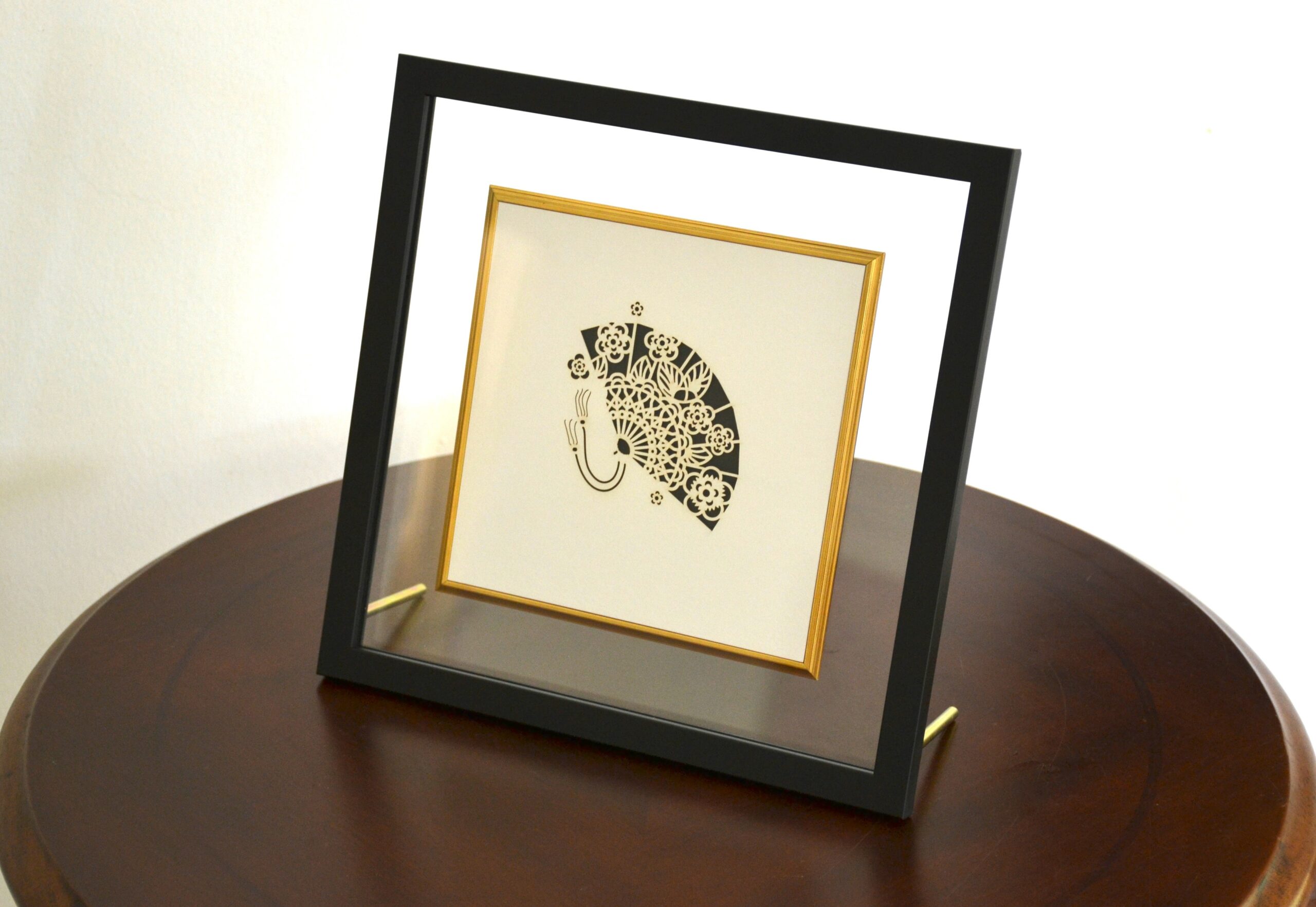 White laser-cut with black backing