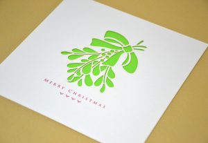 White card with green inlay