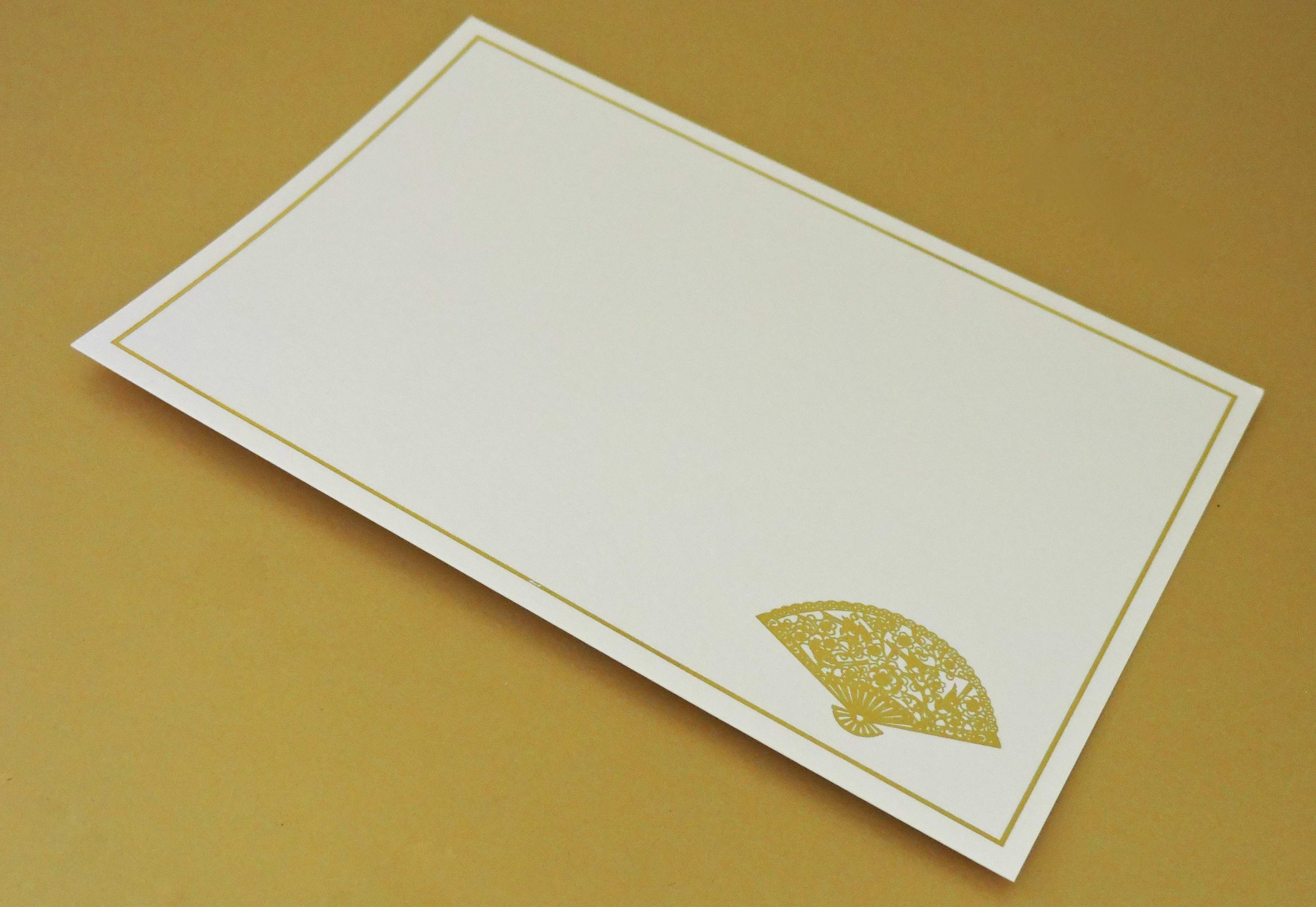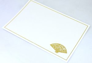 6.18″ x 4.25″ 250gsm, Maple white Gold foil motif and frame Matching envelopes Packaged in plastic sachet