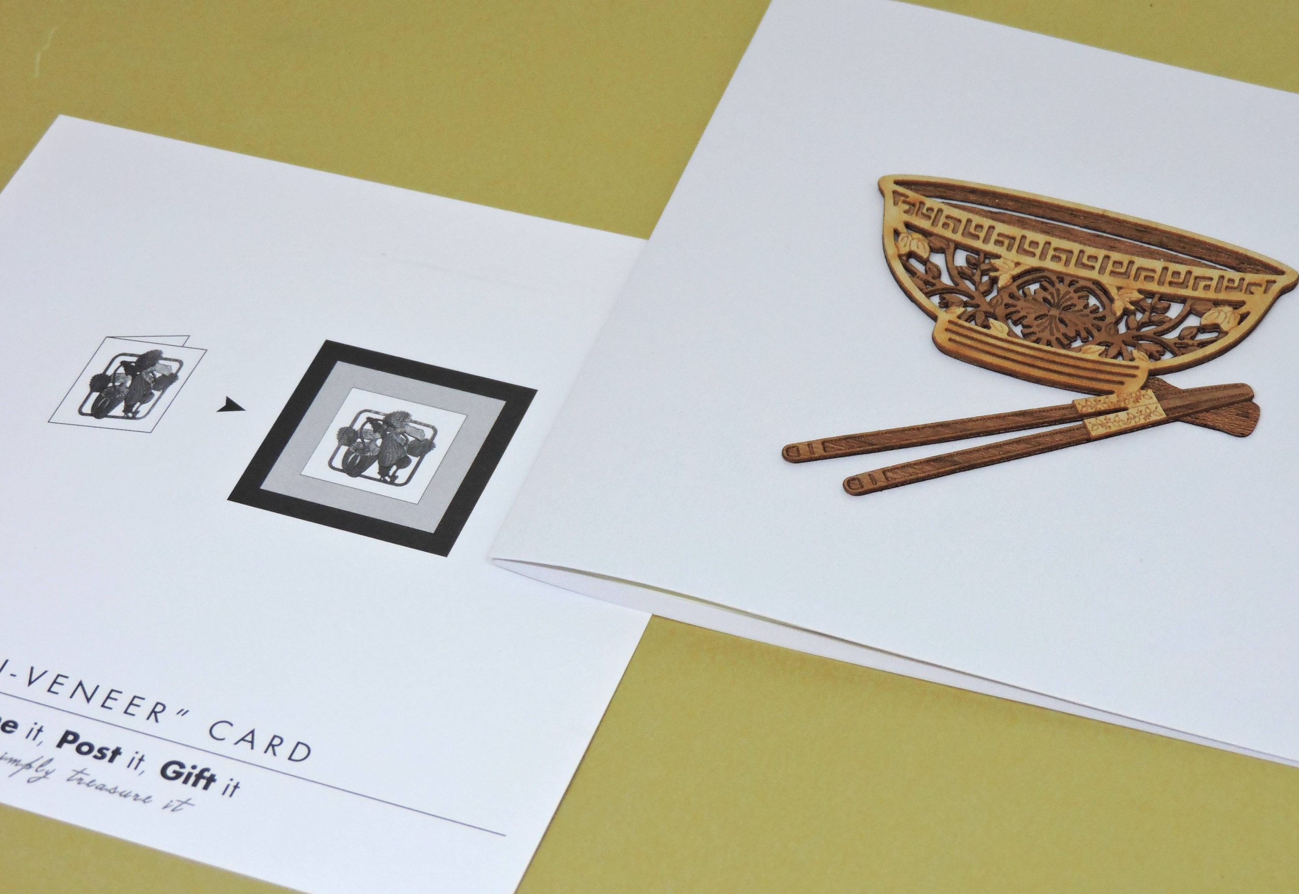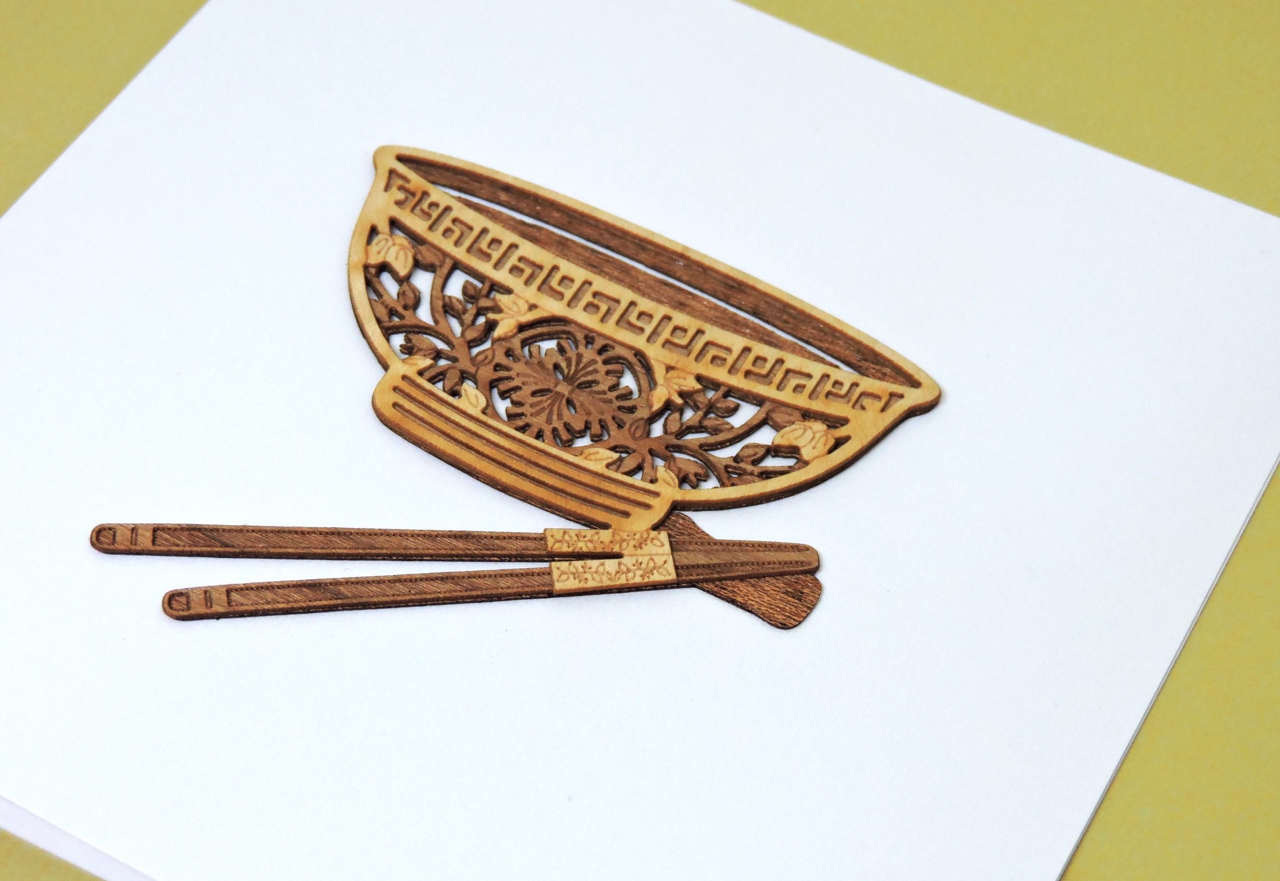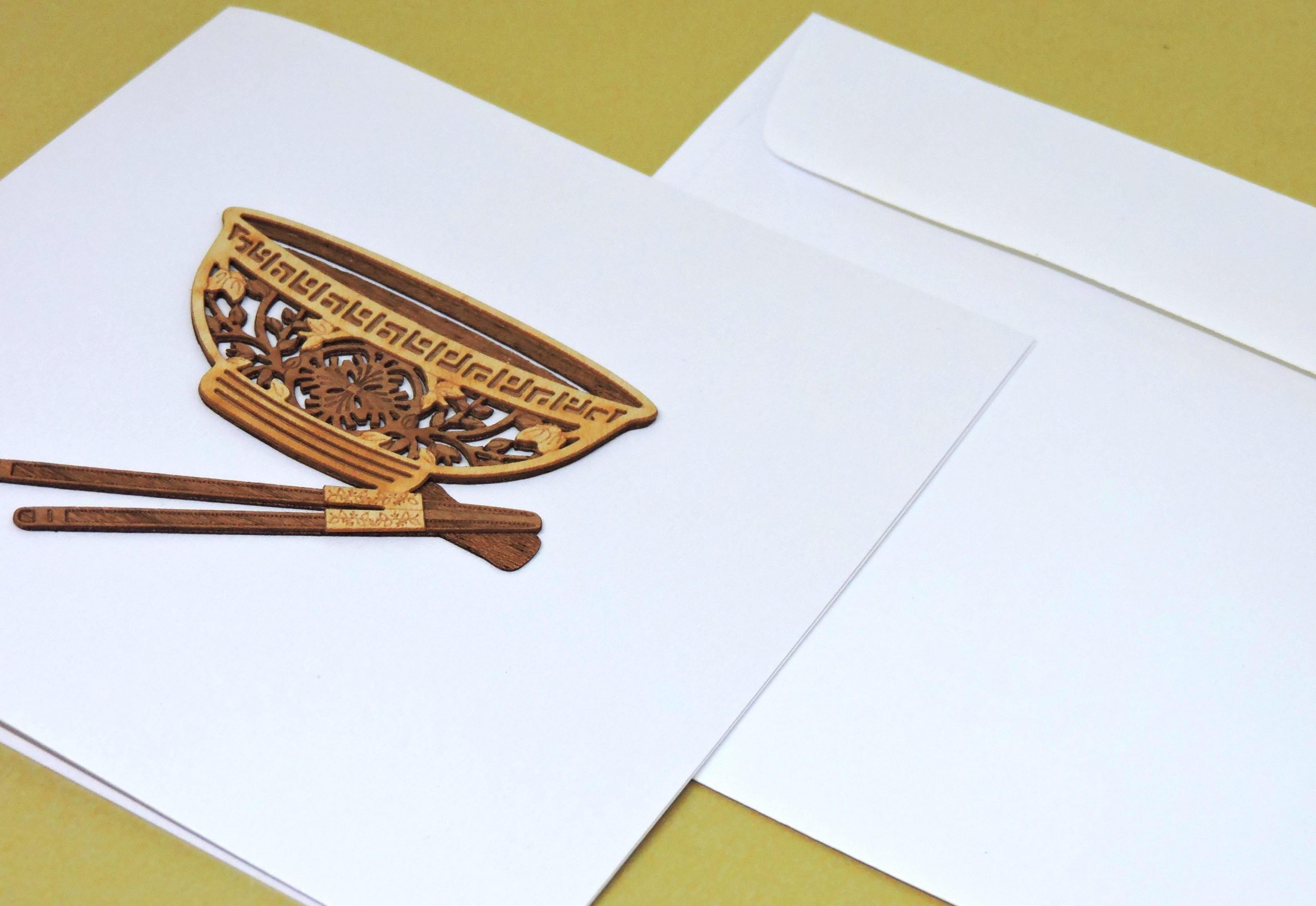 Wood-cut Card : Bowl with chopsticks